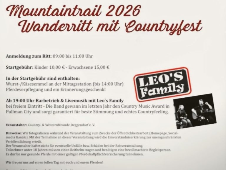 Unser Verein organisiert regelmäßig lebendige Countryfeste mit spannenden Tanzflächen und Live-Musik. Zusätzlich bieten wir Orientierungsritte und Wanderritte an, die Natur und Pferdeliebe verbinden. Für Gäste und Wanderreiter stehen großzügige Koppeln und ein einladender Bar- und Sitzbereich zur Verfügung.